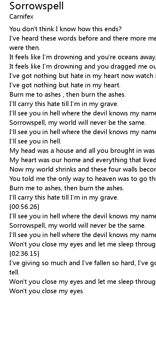 Won't you close my eyes and let me sleep through this sorrowspell. |