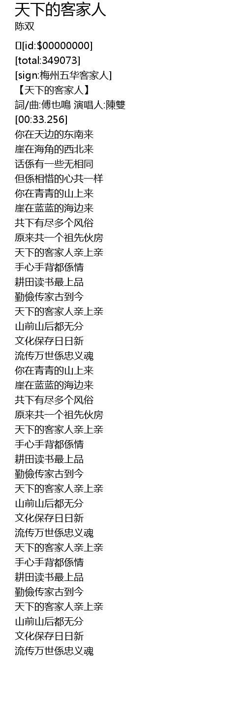 | [03:32.709] | 天下的客家人亲上亲 |