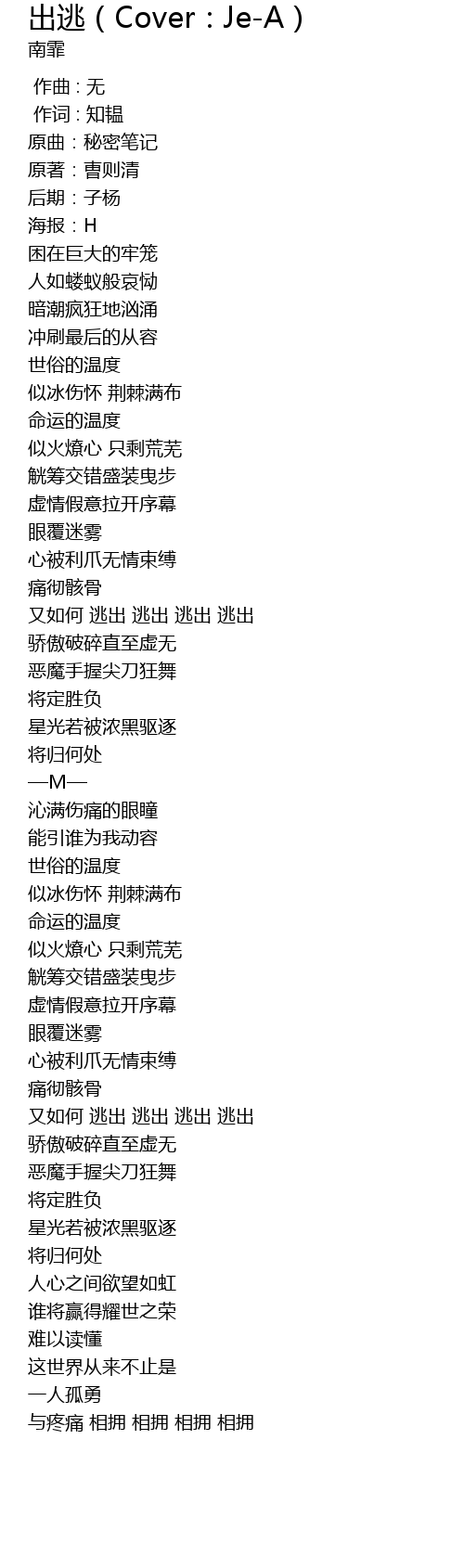 | Song | 出逃(Cover:Je-A) |