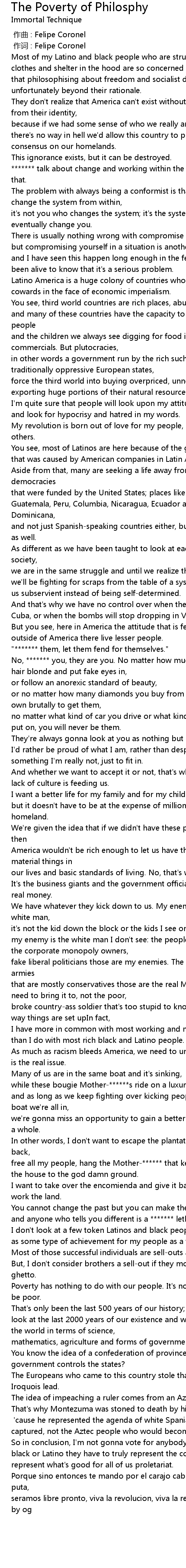 | [00:58.90] | Latino America is a huge colony of countries whose presidents are cowards in the face of economic imperialism. |