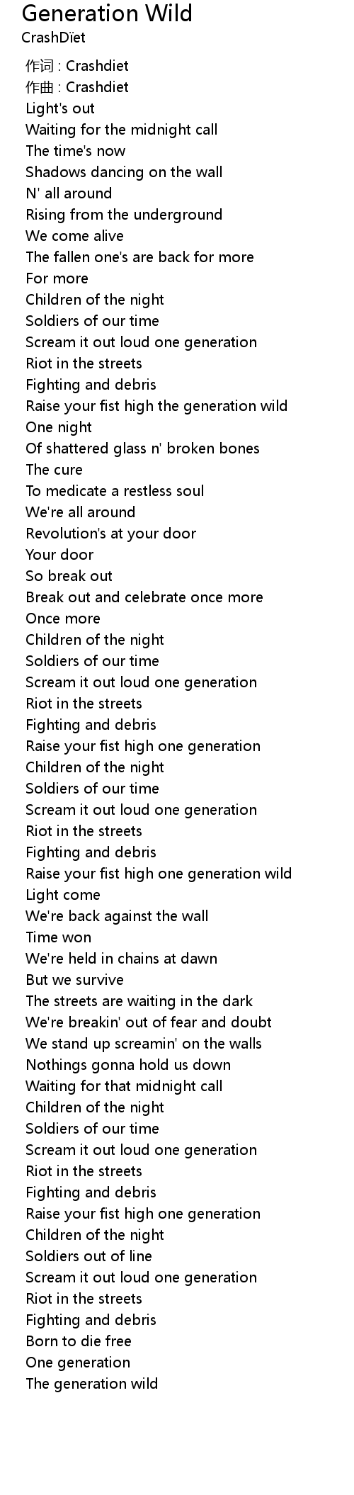 | [00:00.000] | 作词 : Crashdiet |