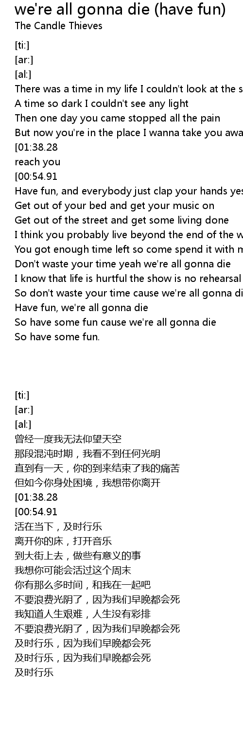 [02:20.67][00:54.91] Don't waste your time cause we're all gonna die