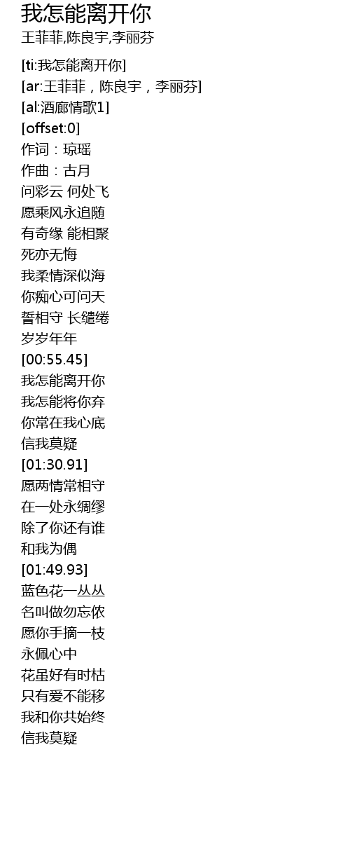 | [01:13.79] | wǒ zěn néng lí kāi nǐ |