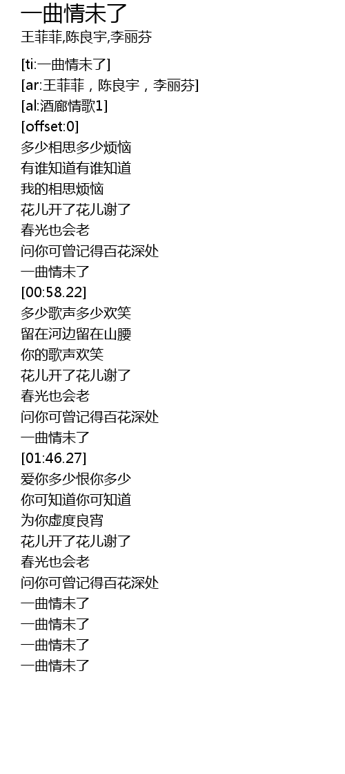 | [01:41.26] | yī qǔ qíng wèi liǎo |