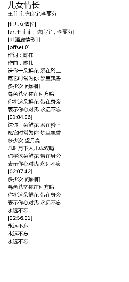 | [00:55.15] | 表示你心对我 永远不忘 |