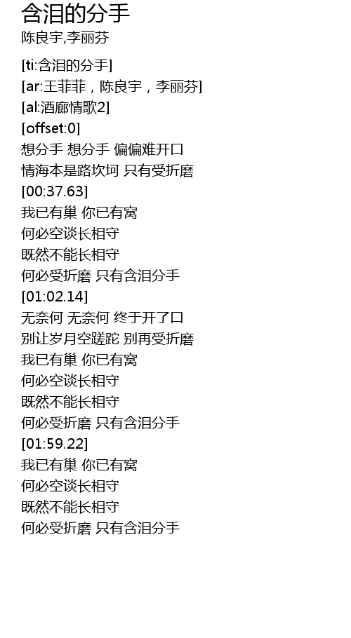 | [02:41.60] | 何必受折磨 只有含泪分手 |