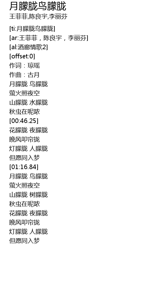 | [01:34.32] | 月朦胧 鸟朦胧 |