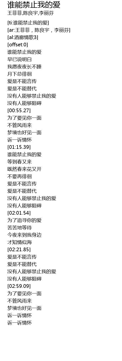 | [00:17.84] | 谁能禁止我的爱 |
