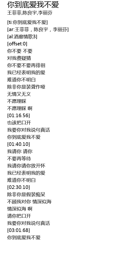 | [03:02.45] | 你到底爱我不爱 |