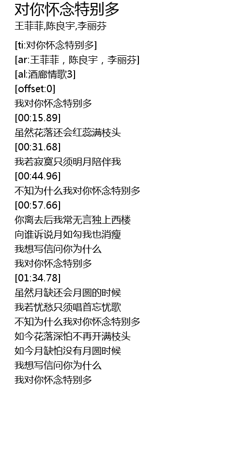 | [01:28.49] | wǒ duì nǐ huái niàn tè bié duō |