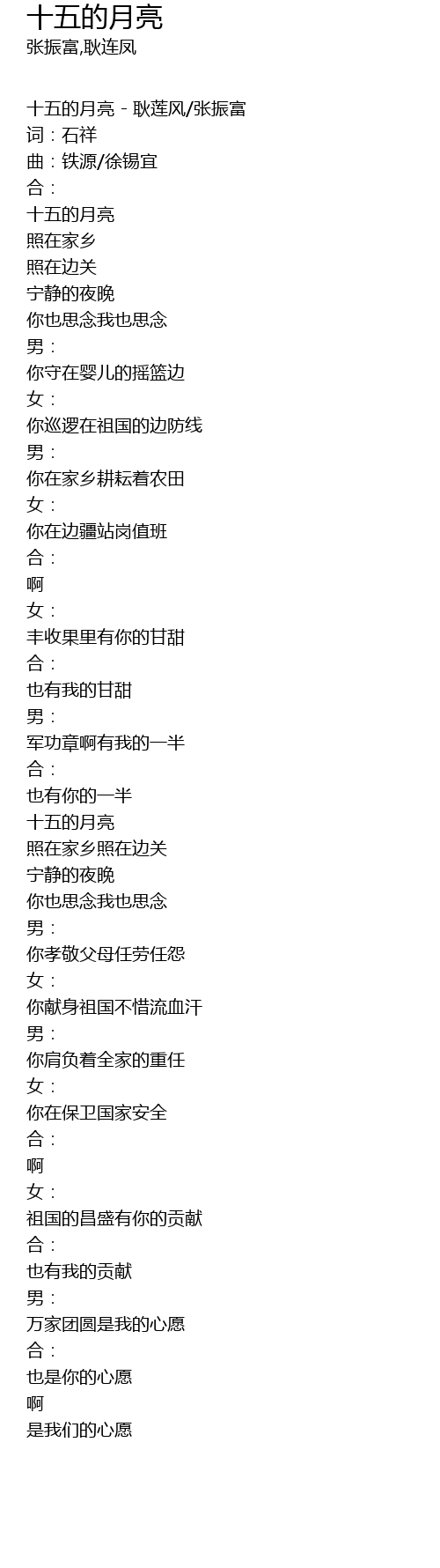 | 十五的月亮 - 耿莲风/张振富 | |