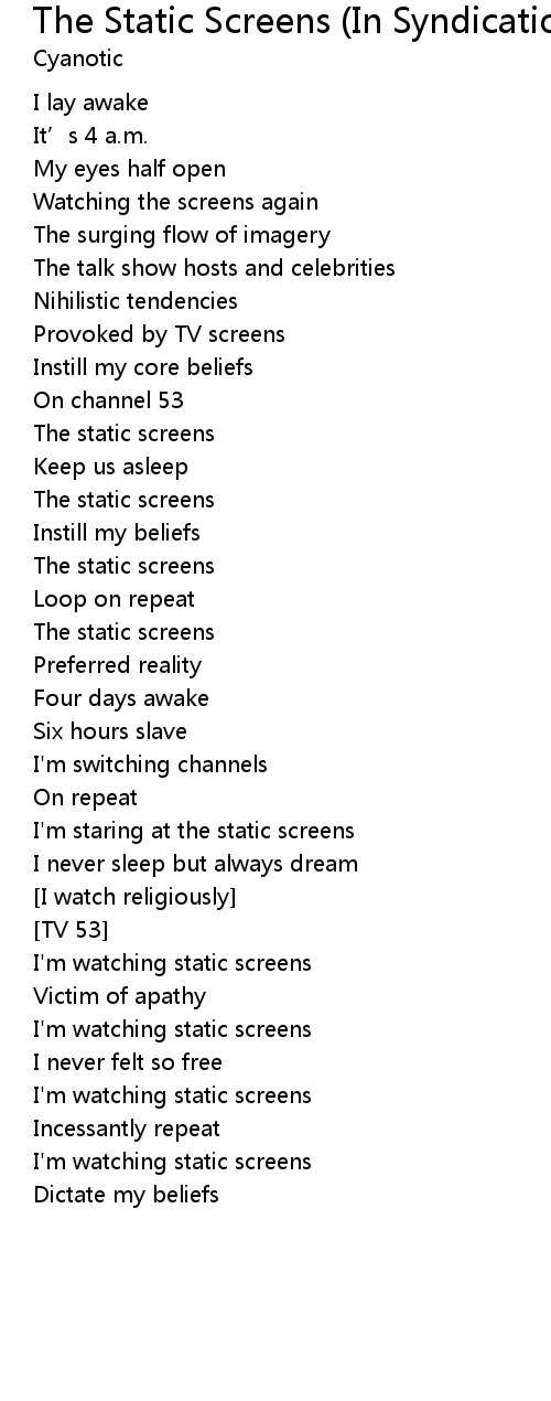| Song | The Static Screens (In Syndication) |