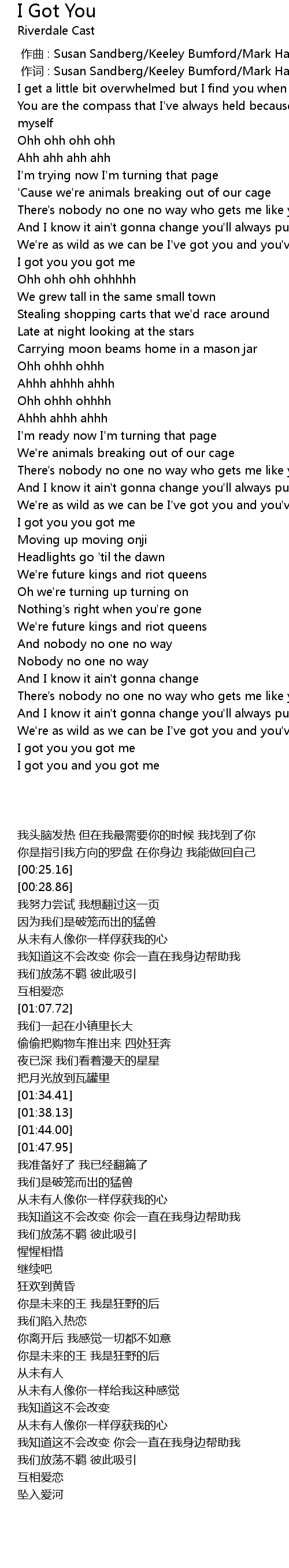 | [00:59.12] | I got you you got me |
