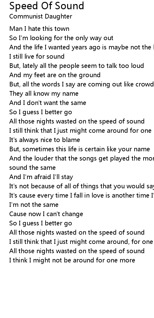 All those nights wasted on the speed of sound |