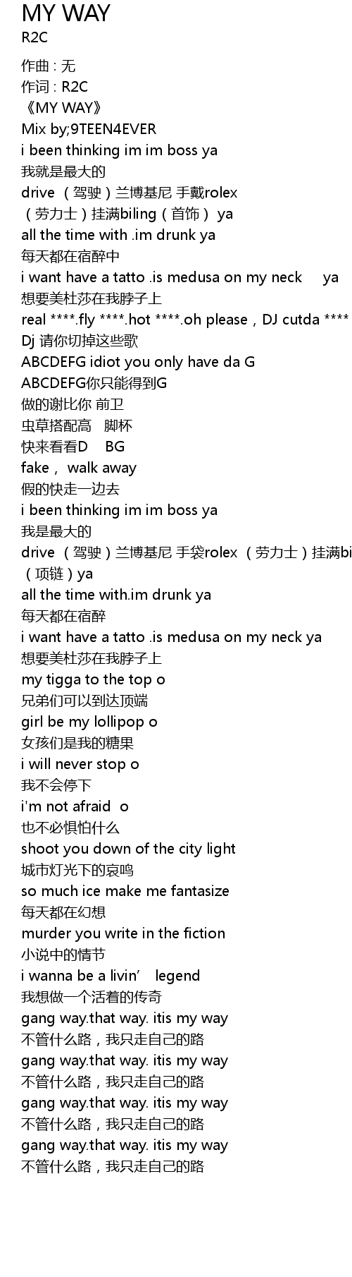 | 作词 : R2C | |
