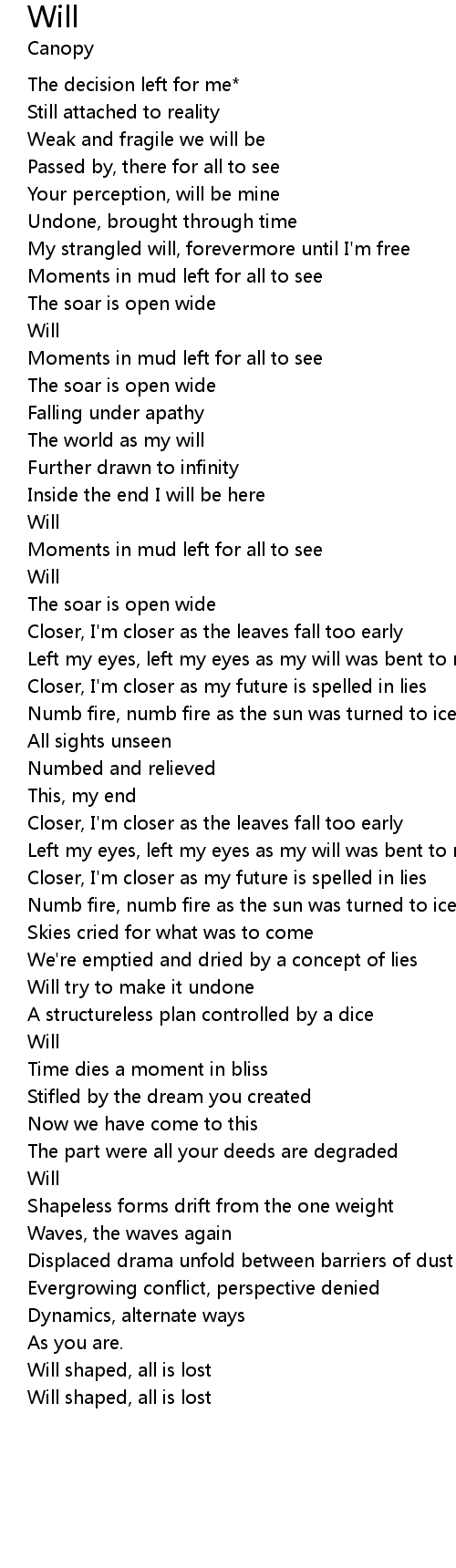 My strangled will, forevermore until I'm free |