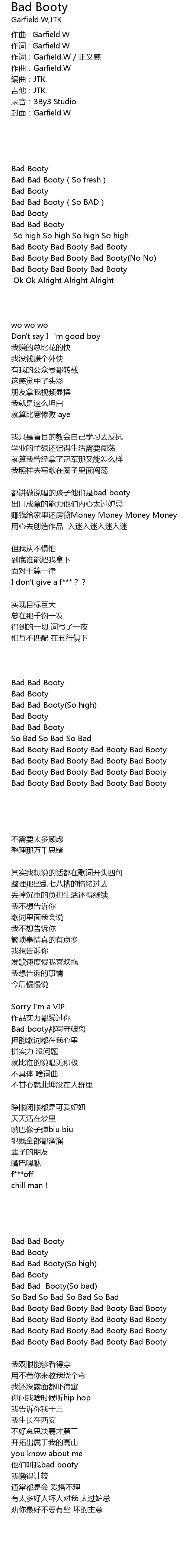 | [00:50] | 都讲做说唱的孩子他们是bad booty |