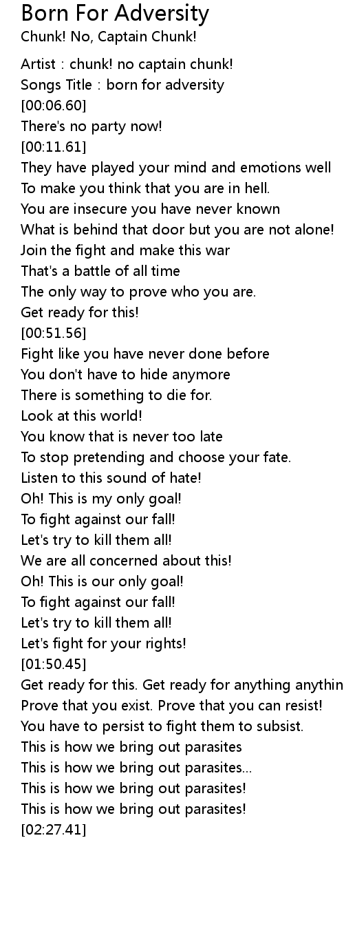 | [02:01.25] | Prove that you exist. Prove that you can resist! |