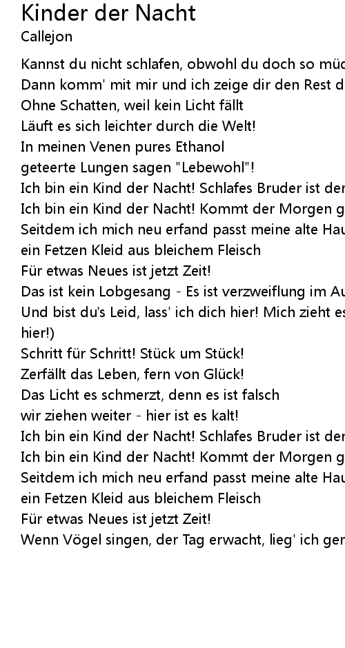 | Ich bin ein Kind der Nacht! Kommt der Morgen graut es mir! | |