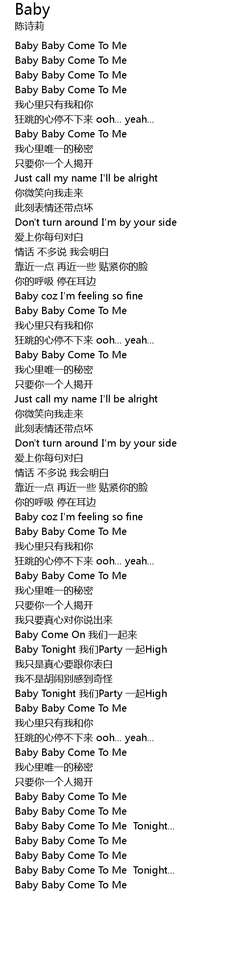 | [00:36.53] | Baby Baby Come To Me |