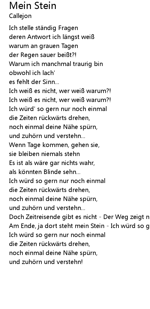 | Am Ende, ja dort steht mein Stein - Ich würd so gerne bei dir sein! | |