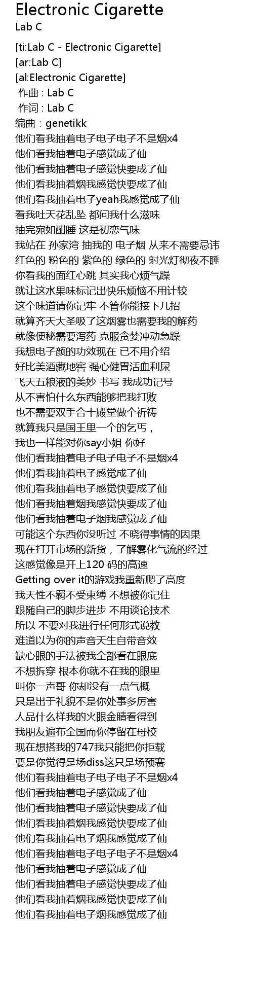 | [01:41.01] | 他们看我抽着电子电子电子不是烟x4 |