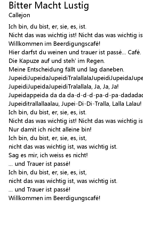 | Song | Bitter Macht Lustig |