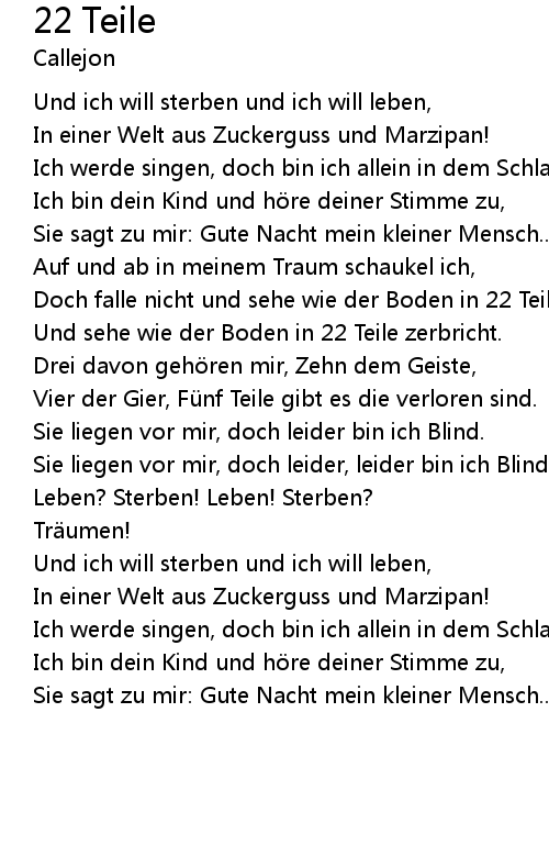 | Doch falle nicht und sehe wie der Boden in 22 Teile zerbricht... | |