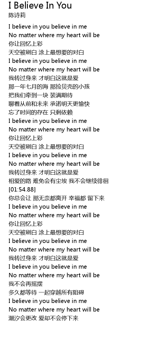 | [01:55.87] | 你总会让 那无奈都离开 幸福都 留下来 |