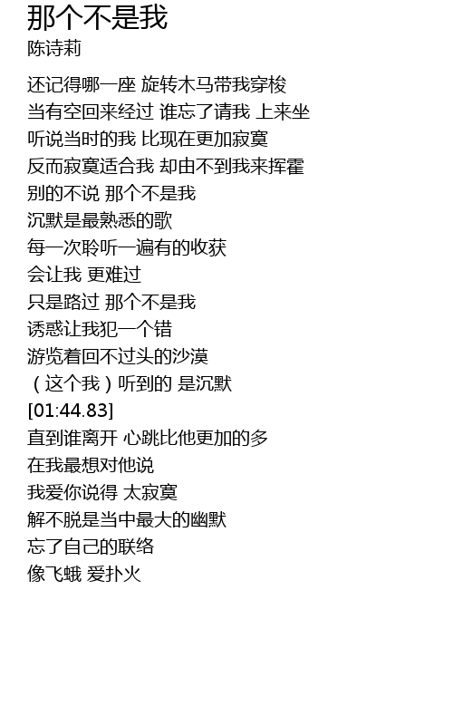 | [01:40.71] | (这个我)听到的 是沉默 |
