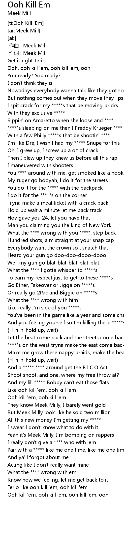 | [00:03.68] | Ooh, ooh kill ' em, ooh kill ' em, ooh |