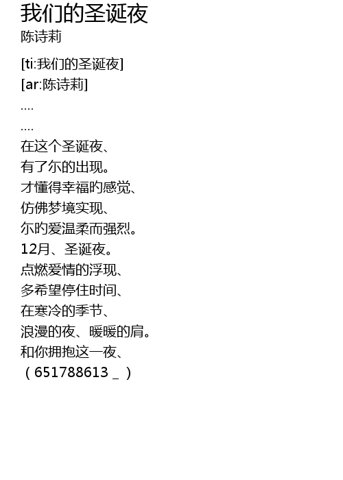| [01:39.538] | 12 yuè shèng dàn yè. |