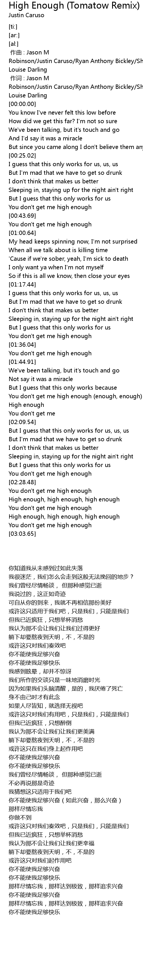 | [01:59.86] | You don't get me high enough (enough, enough) |