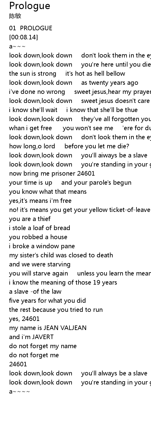 | [03:26.15] | my name is JEAN VALJEAN |
