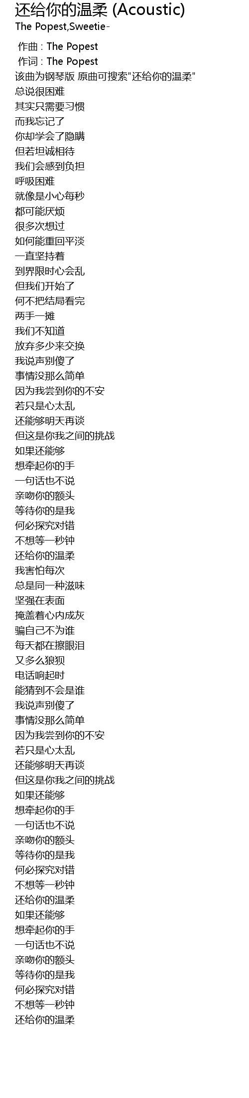 | [00:00.00] | 该曲为钢琴版 原曲可搜索"还给你的温柔" |