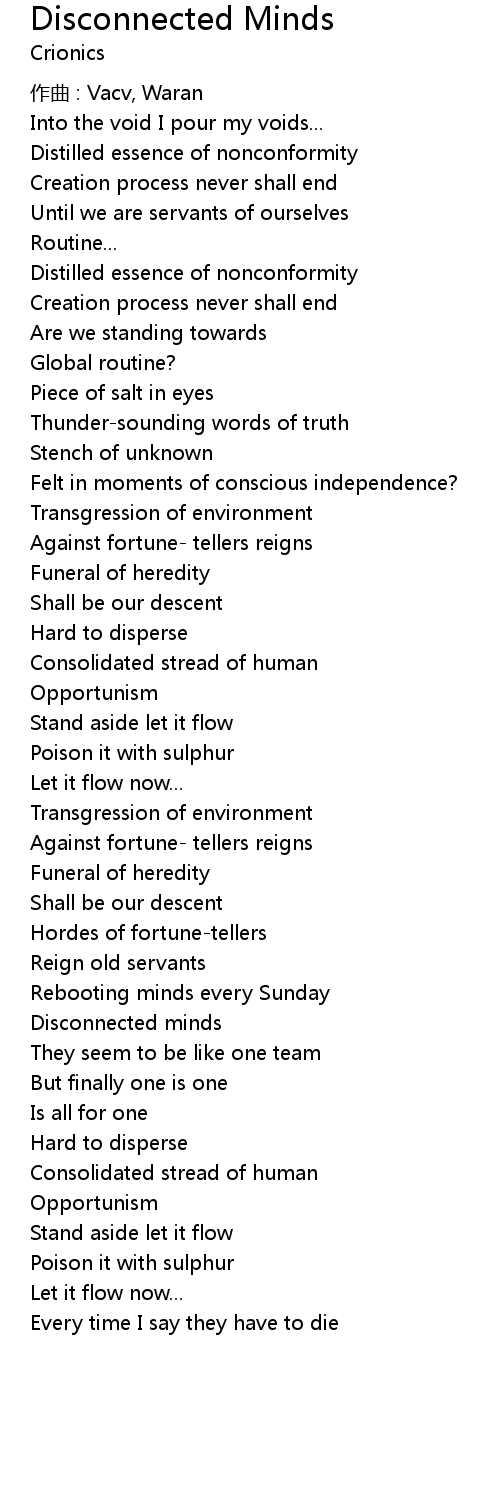 | Disconnected minds | |