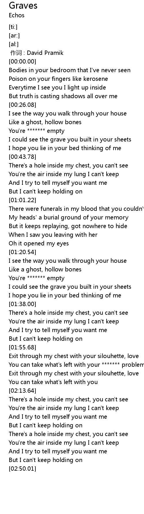 | [00:08.39] | Bodies in your bedroom that I've never seen |