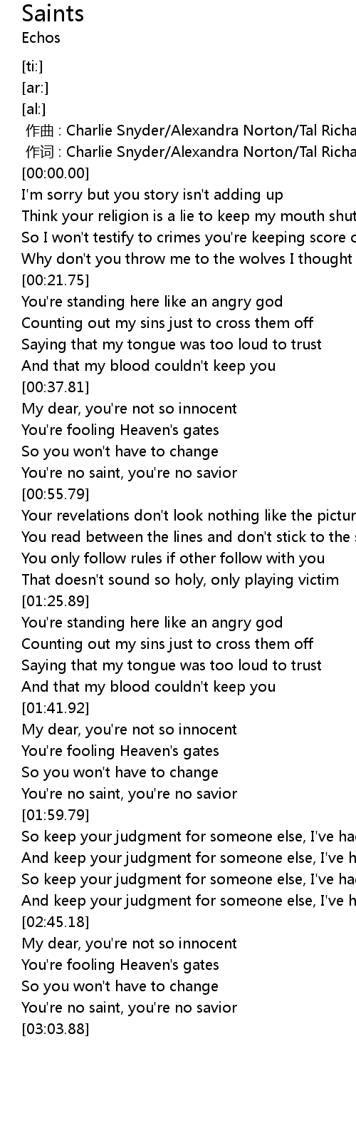 | [01:21.56] | That doesn't sound so holy, only playing victim |