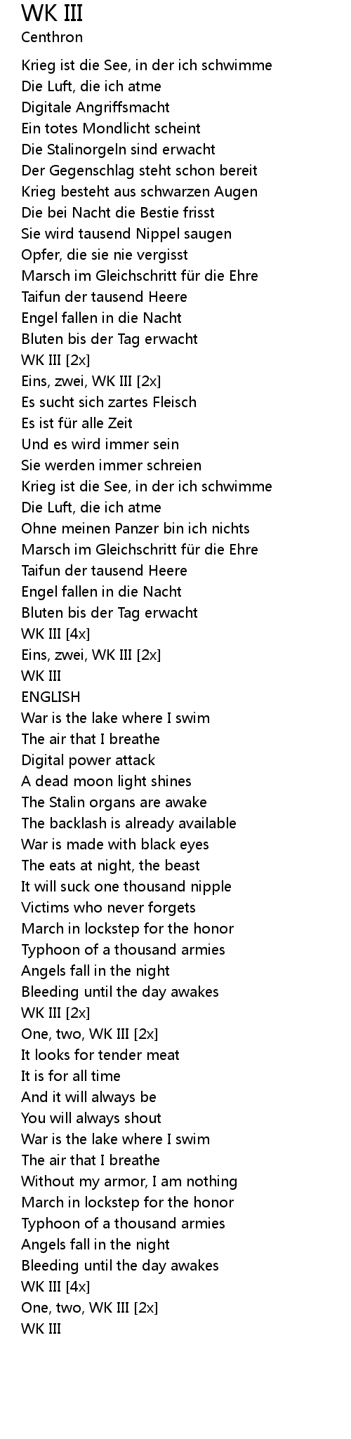 | [2x] | One, two, WK III |