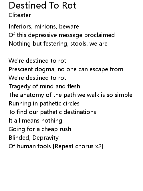 | Destined to rot [Chorus x2] | |