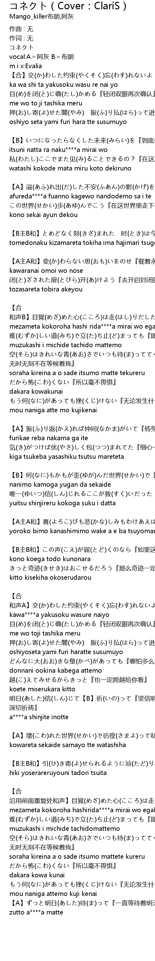 | 【合 沿用前面重复处和声】目覚(めざ)めた心(こころ)は走(はし)り出(だ)した未来(みらい)を描(えが)くため『觉醒的心为了描绘未来开始奔腾』 | |