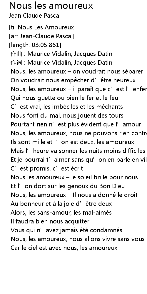 | [02:42.187] | Nous, les amoureux, nous allons vivre sans vous |