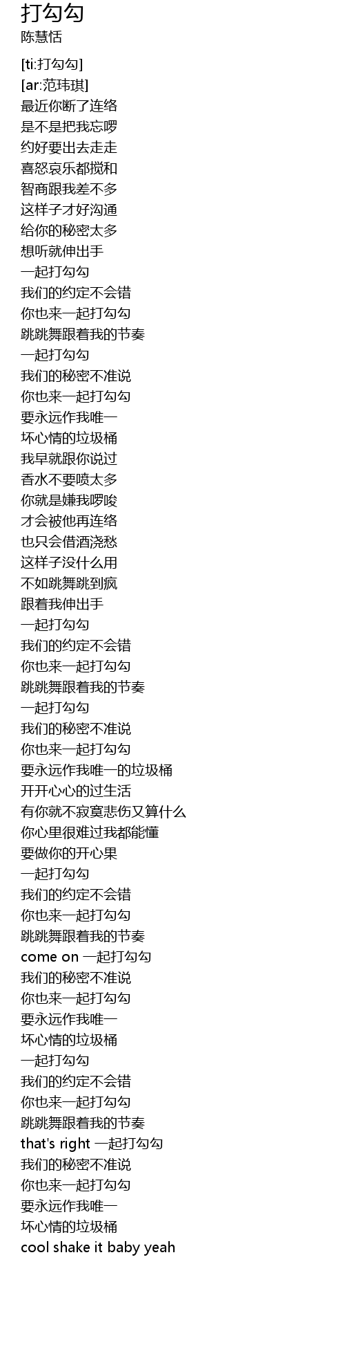 | [00:22.925] | yì qǐ dǎ gōu gōu |