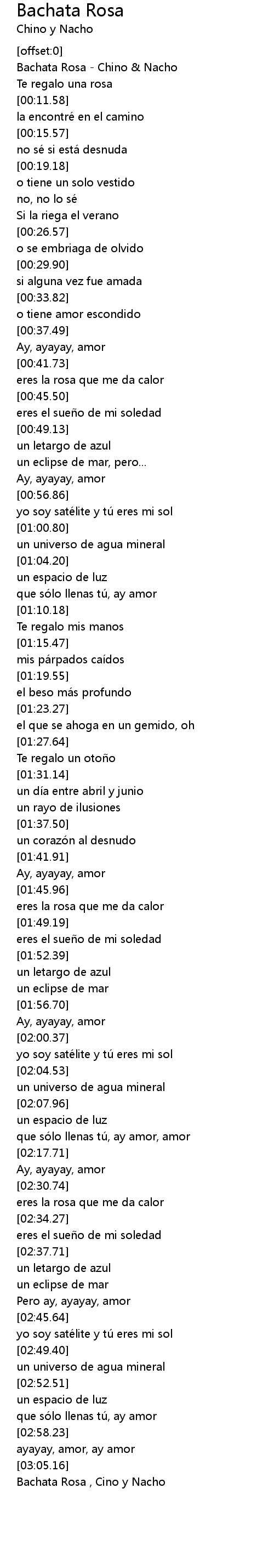 | [03:08.54] | Bachata Rosa , Cino y Nacho |