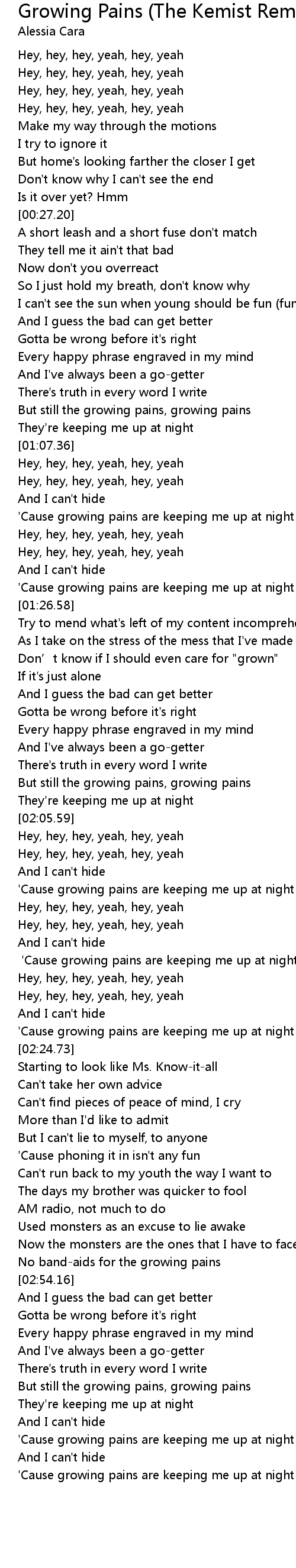 | [03:19.54] | ' Cause growing pains are keeping me up at night |