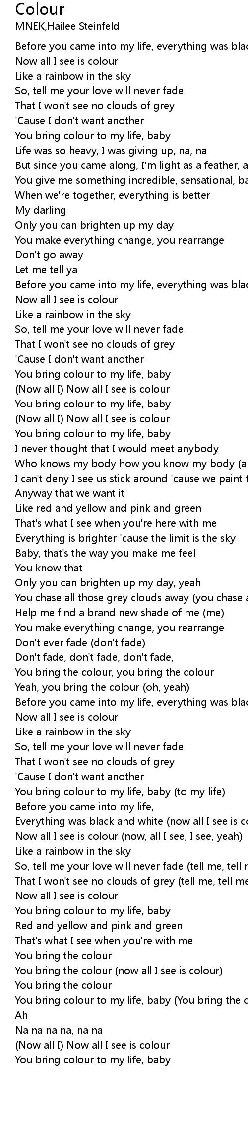Colour Lyrics