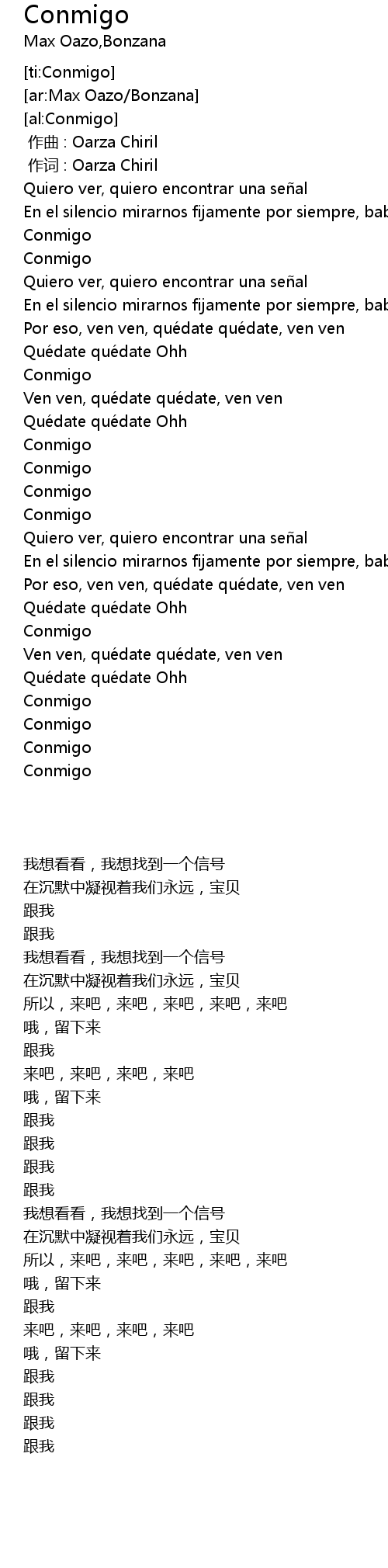 | [01:37.00] | Conmigo |