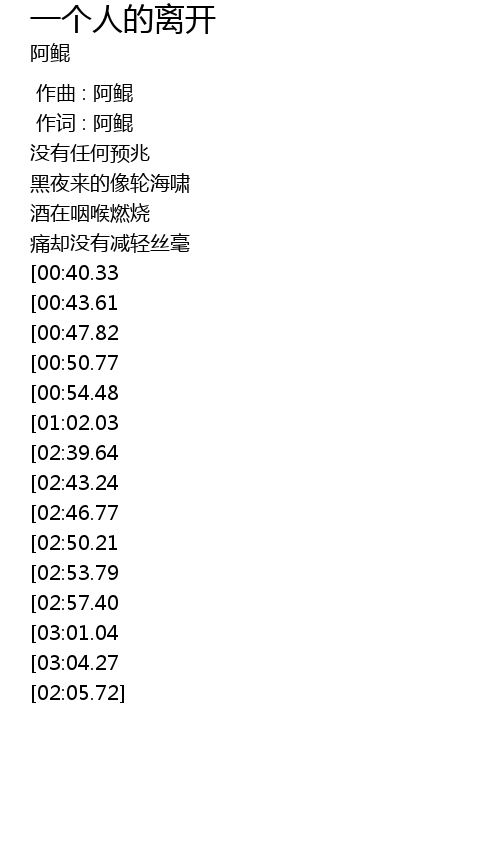 | [03:25.72][02:57.40][01:29.19] | 世界太小还是丢了你 |