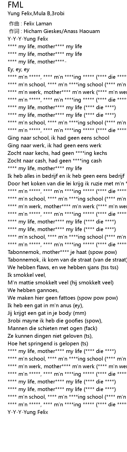 | [02:17.31] | **** my life, mother**** my life (**** die ****) |
