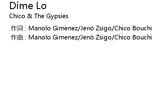 | [00:00.000] | 作词 : Manolo Gimenez/Jenö Zsigo/Chico Bouchikhi/Antal Kovács |